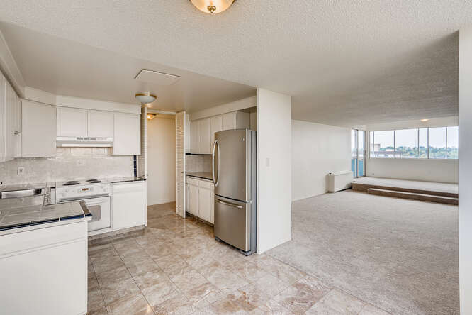 Terrific 2 bedroom, 2 bathroom corner unit mid-mod condo building in the heart of Denver’s premier neighborhoods! Your future is on the 14th floor! Amazing city and mountain views with a covered balcony with access from each room through floor to ceiling sliding glass doors. Updated kitchen with bright white cabinetry and stainless-steel appliances. Brand new carpet and paint through-out. Bathrooms have been updated with new vanities and new light fixtures. Don’t miss the rooftop pool with panoramic views of the city and mountains, and fitness center. Within 5 blocks of walking distance to Trader Joe’s, Starbucks, public transit, and numerous other restaurants & shops. Buy now before the 9th & Colorado Project is done and the area increases! Just minutes from downtown central business district. Call now to schedule your personal showing!