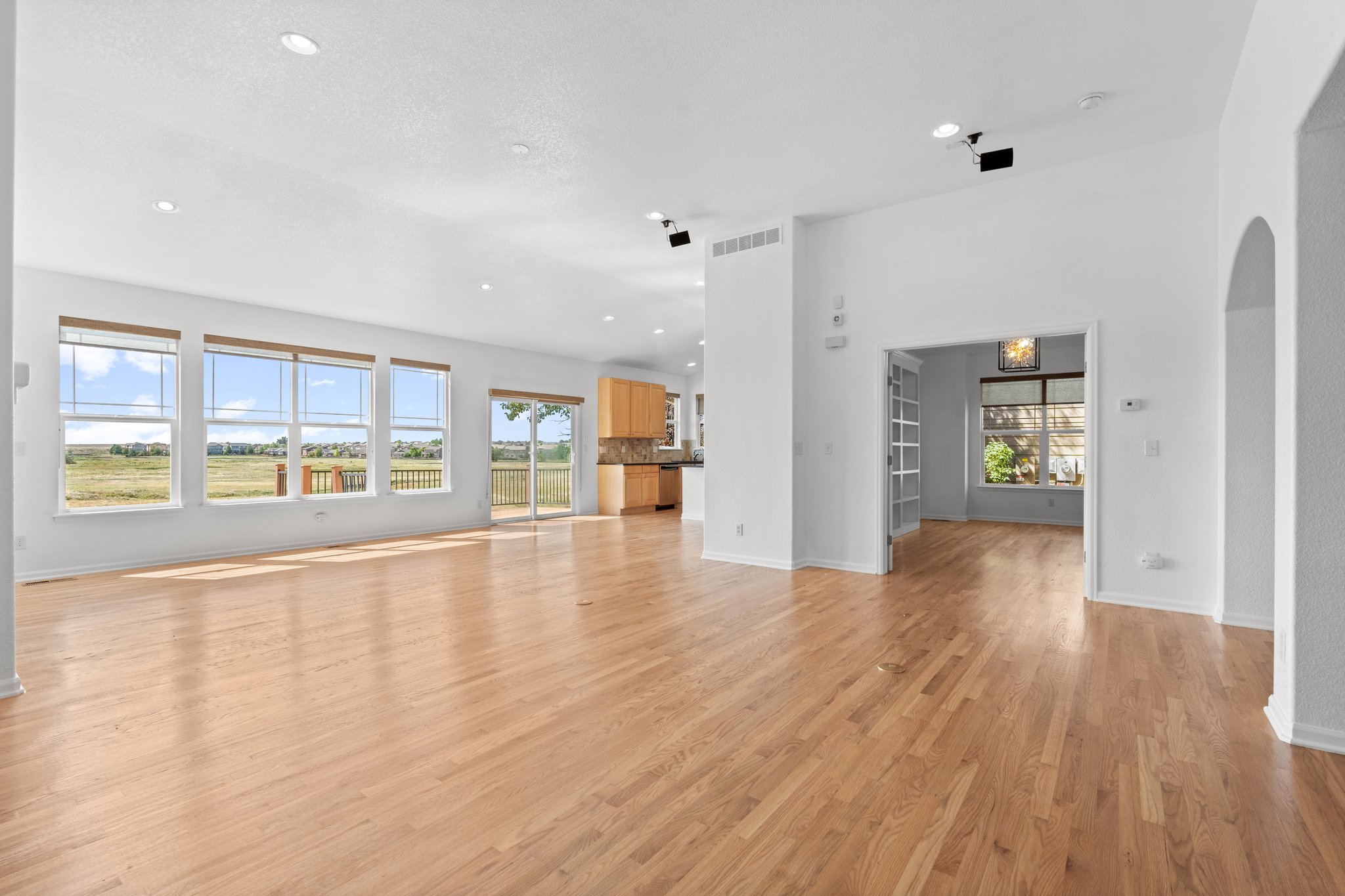 Are you searching for a spacious, newer ranch-style home with over 5,100 square feet that truly has it all? This impressive property offers breathtaking, unobstructed views of open space right from your backyard. The main level features a luxurious primary bedroom suite with those same stunning views, a living room with vaulted ceilings, an open kitchen equipped with stainless steel appliances, a dining area, a large office with built-ins, three additional bedrooms, two more bathrooms, a convenient laundry room, and a three-car garage. Step out onto the deck to soak in the expansive blue skies and observe the ever-changing weather and wildlife. When you’ve explored the main level, head down to the unfinished basement, offering endless possibilities for customization—imagine adding more bedrooms, bathrooms, a home theater, bar, game room, and more. This home has been meticulously cared for, with recent updates including new carpet, fresh paint, and newly stained wood floors. It’s rare to find a property with this much square footage, a three-car garage, and a lot backing onto open space with panoramic views. Homes like this don’t come on the market often, so don’t wait—this is a rare opportunity!