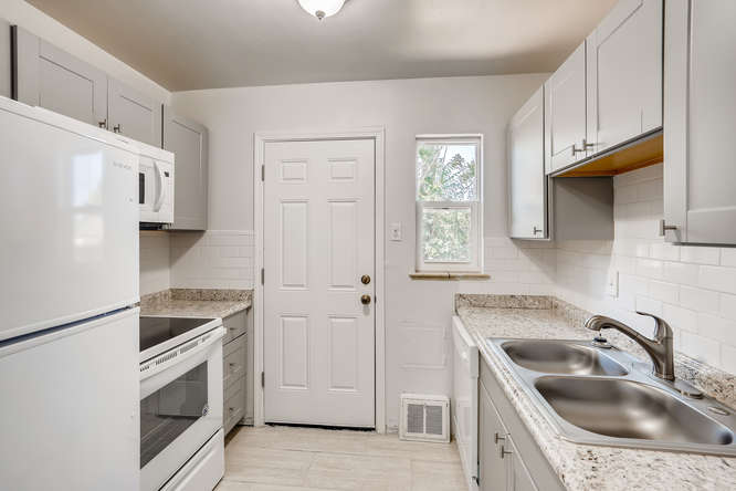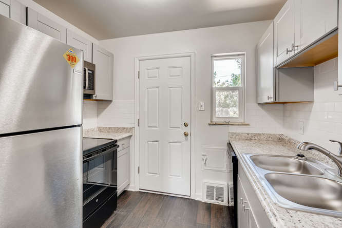 Rare to find a remodeled side by side full brick duplex close to everything in Park Hill. Inside has been remodeled with new carpet, new interior and exterior paint, new cabinets, new stainless steel appliances, new counters, new plumbing fixture, new light fixtures, new water heaters and new windows. You could live in one unit and rent the other side or buy the whole thing and rent it out and have a great rental for years to come. Both units have 2 beds and 1 baths and have a good floor plan that flows well. Nice back yard can easily be split for more privacy for the owner or tenant. Seller lived in the duplex and never rented it out. Come get this great FULL duplex!